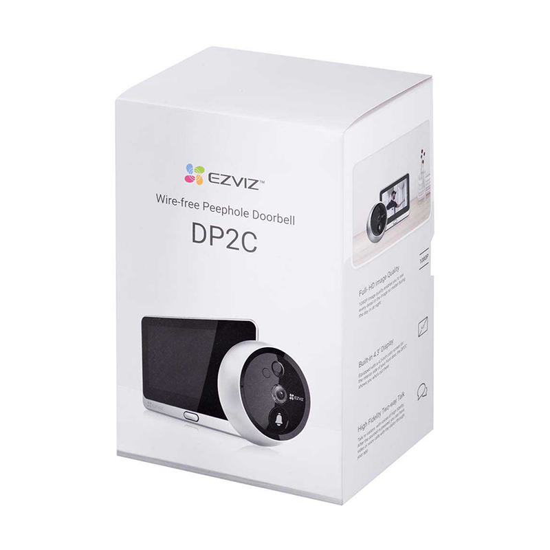 DP2C сочетает в себе дверной глазок с камерой и дверной звонок, обладая современным дизайном и множеством функций для охраны входной двери. Вы получаете чёткое изображение, умные функции и возможность видеть и разговаривать с посетителями через внутренний цветной экран. Используя приложение EZVIZ на смартфоне, вы будете получать уведомления о любой подозрительной активности возле двери.