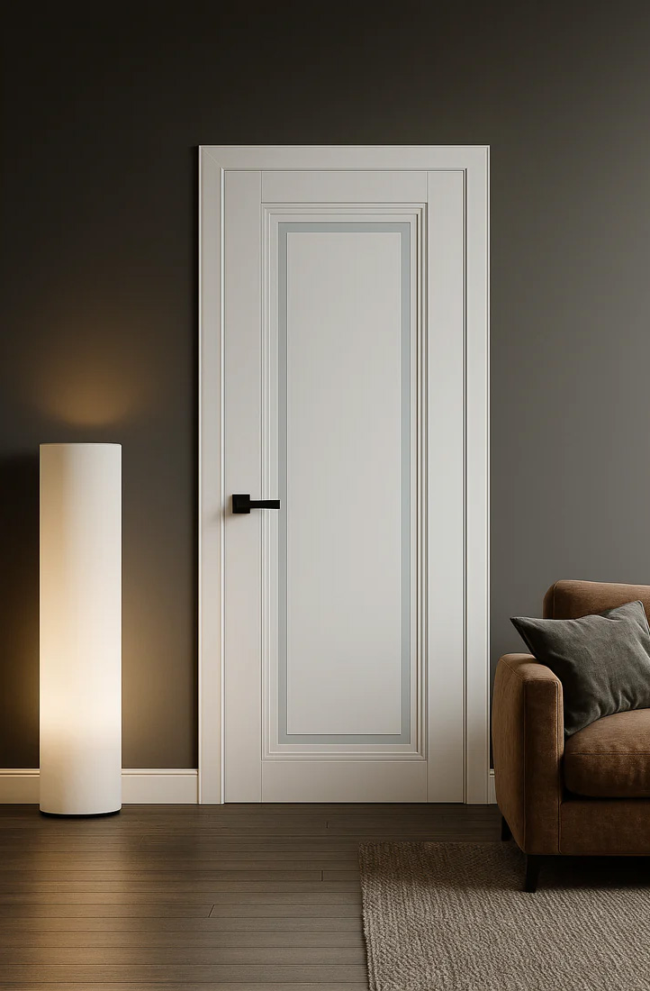 Дверная конструкция из HDF высокой плотности (950 кг/м³), что обеспечивает надежное крепление фурнитуры и других элементов. Дверное полотно наполненное без пустот. В наше время HDF очень популярен в производстве межкомнатных дверей, благодаря своей прочности и долговечности. Покрытие дверей из ПВХ от итальянского производителя. Данное покрытие имеет Европейский сертификат согласно ISO – 9002/EN 29002 нормам. Покрытие не выгорает и не меняет свой цвет со временем. Покрытие особо устойчиво к значительным механическим нагрузкам и устойчиво к воздействию органических растворителей и за ним легко ухаживать. Двери комплектуются компланарным поганажом. Дверная коробка изготовлена из комбинированного массива дерева. Коробка компланар позволяет установить дверное полотно в одну плоскость с краем коробки.