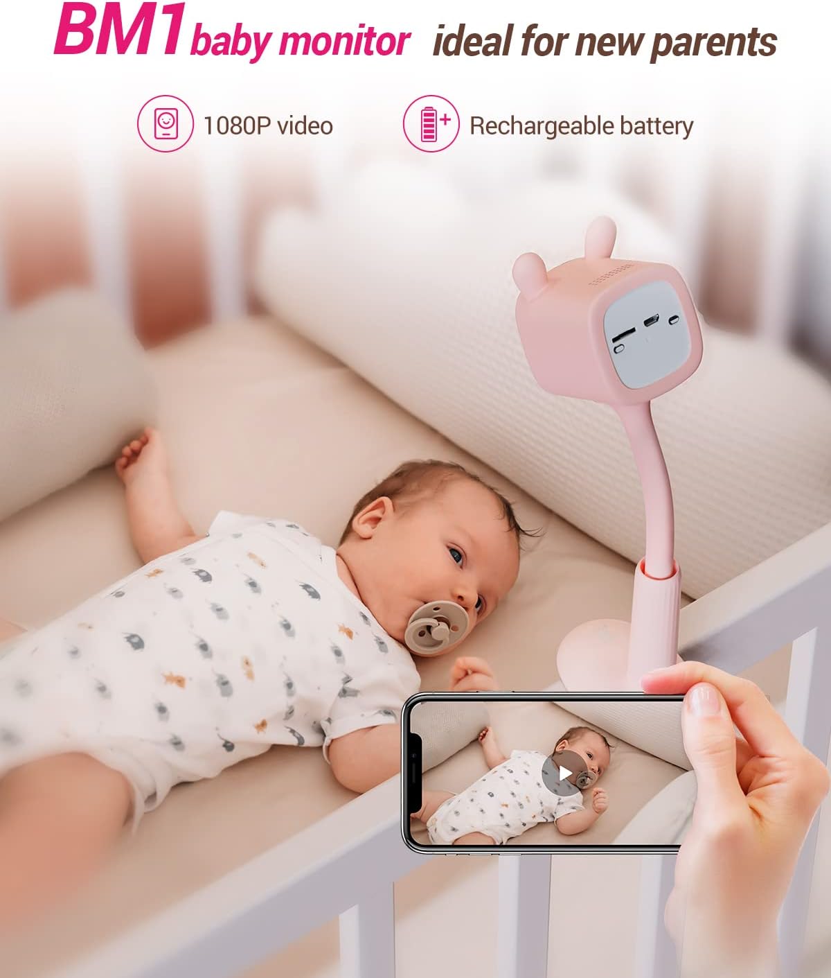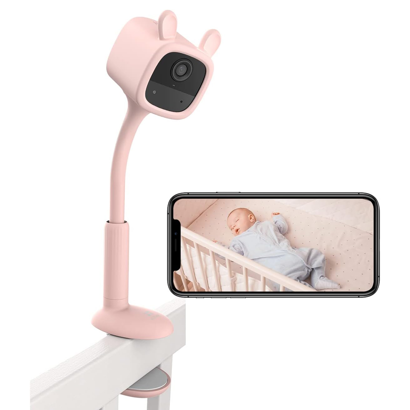 Kaamera saab hõlpsasti voodi külge kinnitada ning selle hoidikut saab reguleerida, et leida parim vaatenurk kogu võrevoodi katmiseks.