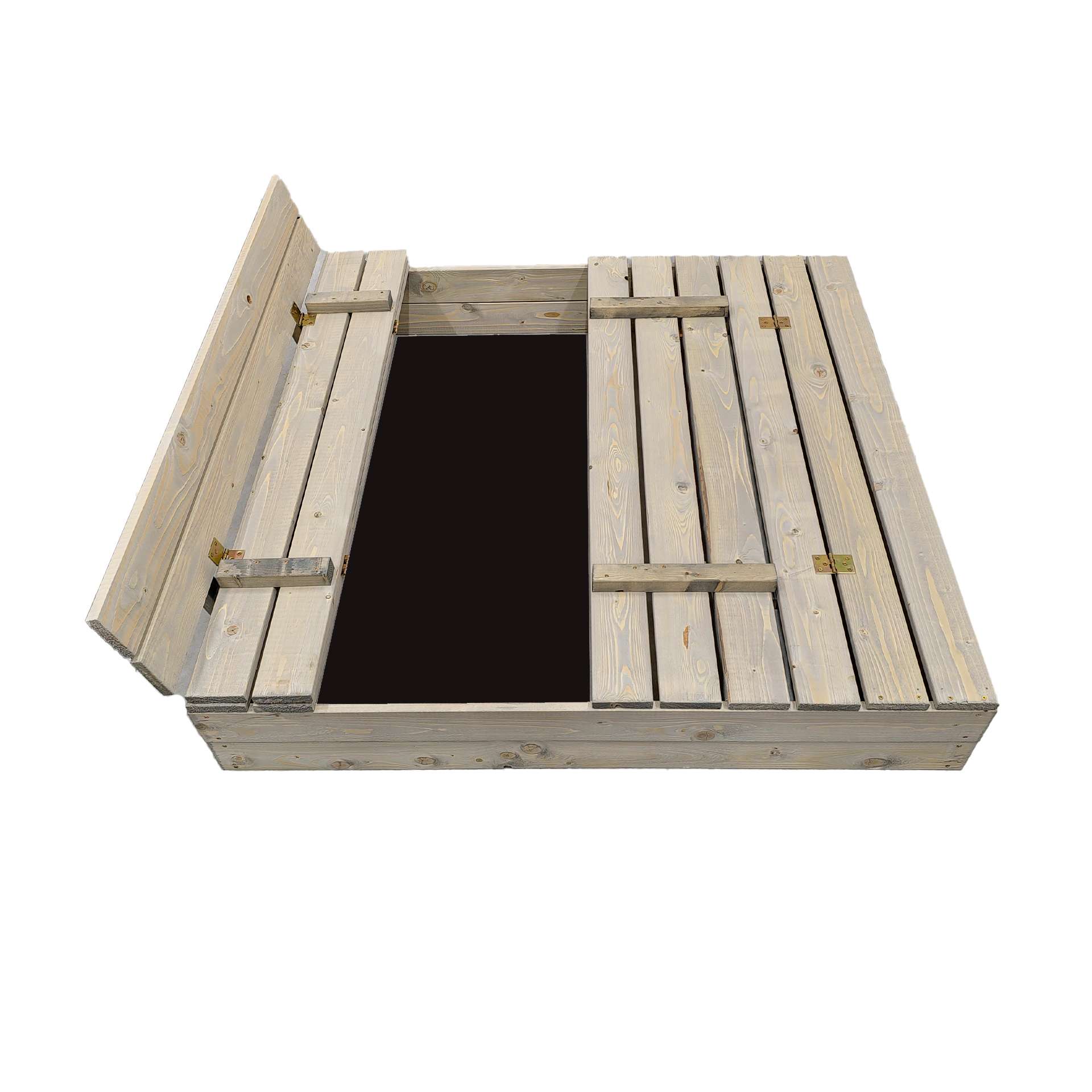 Praktiline ja multifunktsionaalne liivakasti komplekt sisaldab endas kõike, mis vaja. Liivakasti kaas kaitseb koduloomade külastuste ja puudelt langevate lehtede eest. Avatult muutub kaas pingiks. Valmistatud immutatud männipuidust, töödeldud halli immutusega. Komplektis on kaasas hingav geotekstiilist põhi.